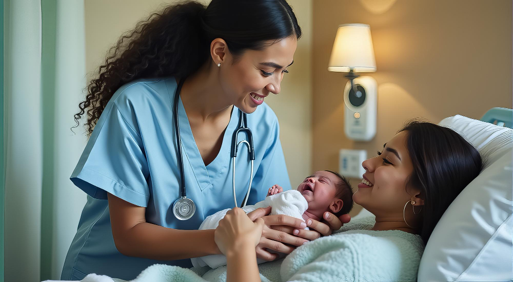 Assistance during natural labour ensuring safety and comfort for mother and baby.